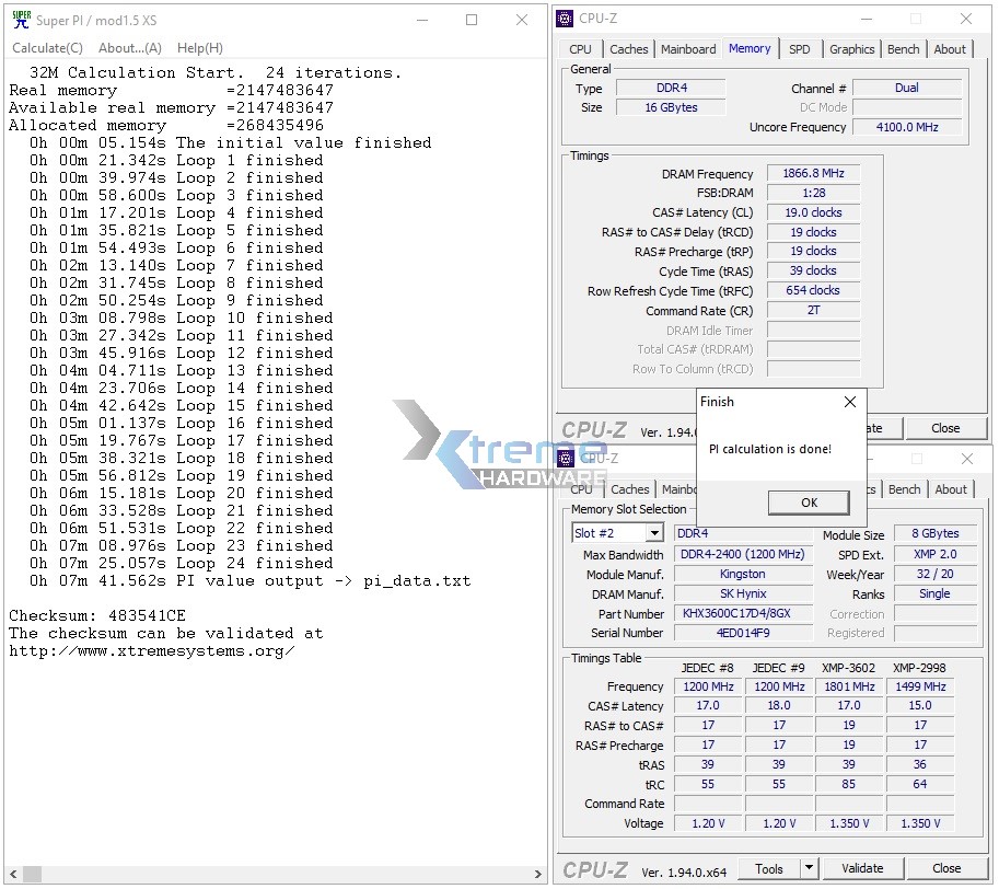 Con le HyperX Predator RGB siamo riusciti a salire fino a 3800 MHz ma non essendo stabili al 100% abbiamo abbassato leggermente la frequenza stabilendoci sui 3733 MHz con Timings di 19-19-19-39 2T (con timing più aggressivi avevo dei leggeri freeze). Tale frequenza è stata ottenuta alzando il voltaggio RAM a 1.38 Volt e aumentando il voltaggio del System Agent a 1.46 Volt. Così facendo siamo riusciti a chiudere il nostro SuperPi e ad effettuare ogni operazione come navigazione, gaming intenso e altro ancora. Abbiamo dunque ottenuto un +133 MHz rispetto la frequenza base del nostro Kit ovvero di 3600 MHz. Possiamo dunque ritenerci soddisfatti dei moduli HyperX Predator RGB e dei chip Hynix montati. Sicuramente con un miglior IMC della CPU avremmo ottenuto qualcosa di più.