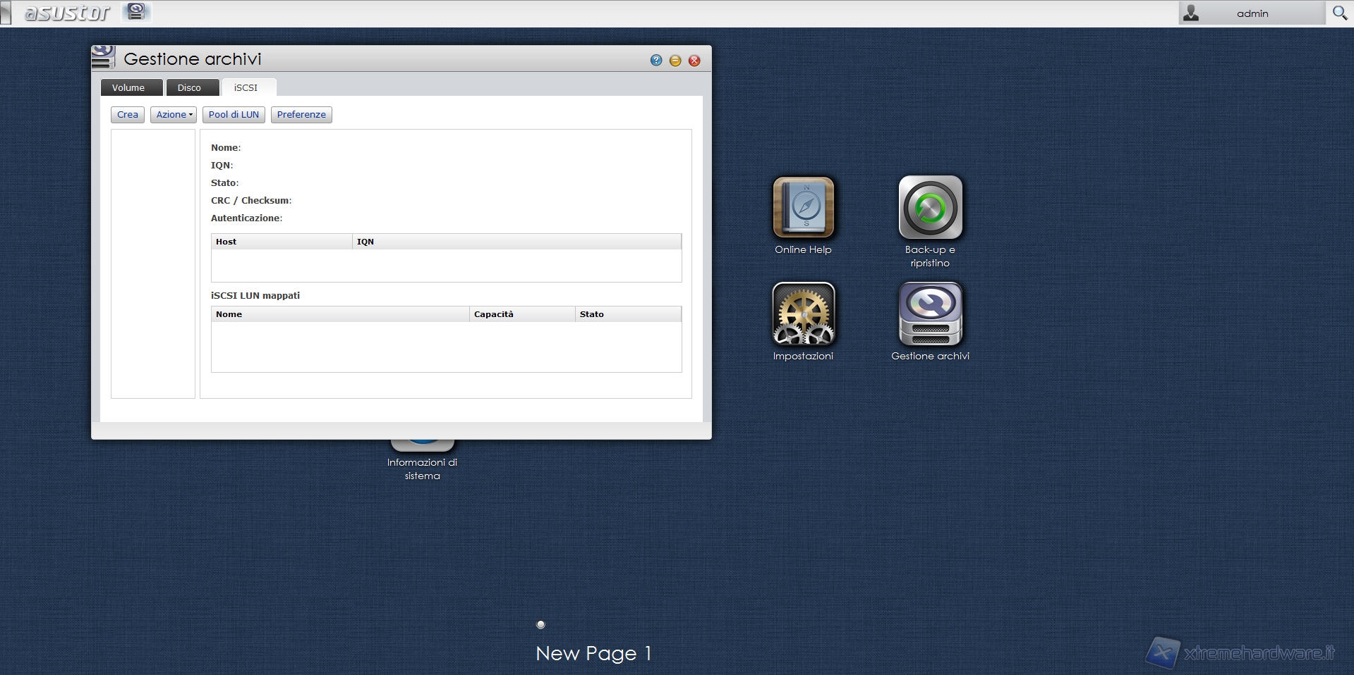 L’ultima schermata è relativa alla funzione iSCSI; impostiamo il target e l’azione da questo menù.
